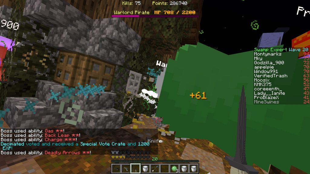 We have reduced the damage of most weapon types in Mob-Arena to balance out the knockback and throwable buffs, and to better balance the different weapon categories.