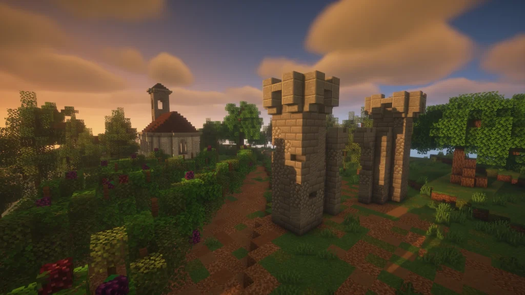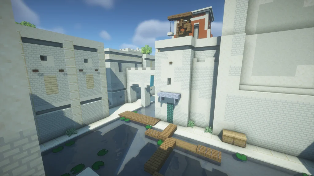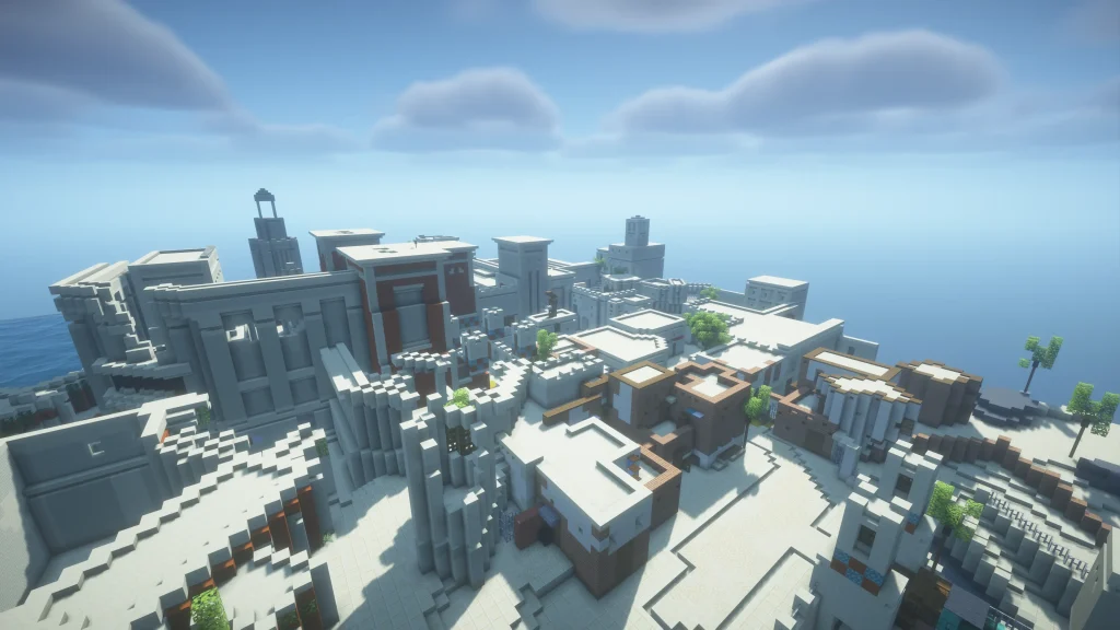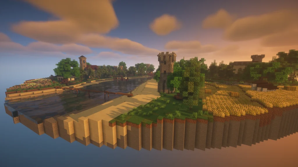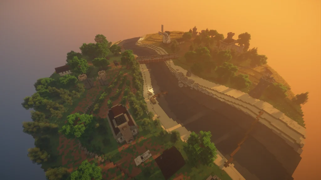 Petri is a map that features a historical European town with a twist that its name suggests: the whole map is on top of a floating disk! Chests with unique resources are available in various buildings representing the farmers and aristocrats. Available in PVP modes including Mine-Spades.